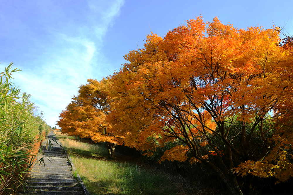 栗野岳温泉に行く途中たくさんの木があり、秋になると赤色とオレンジ色の紅葉がたくさん見られます。近くには霧島アートの森もあり、湧水町を思う存分楽しめ、心も体も癒されます。